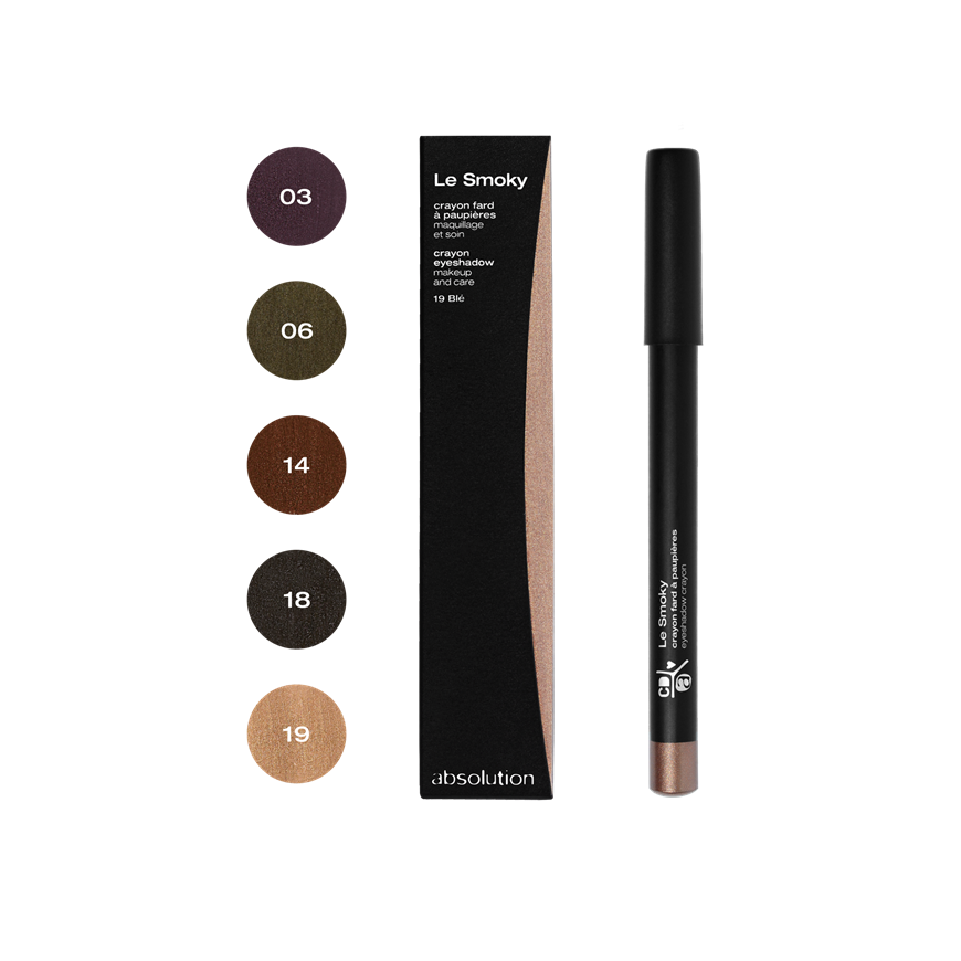 Le Smokey is verkrijgbaar in vijf diepe, modieuze kleuren: 03 Aubergine, 06 Olive, 14 Chocolat, 18 Charbon en 19 Blé. Kies de kleur die het mooiste past bij uw ogen, uw teint en uw kleding en creëer een oogopslag die niemand kan weerstaan!